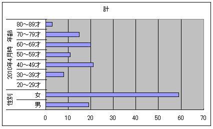 また、それらを理由に来院されてる方たちの年齢分布です。40歳代、60歳代、70歳代の方々が多く、やはり女性が多かったです。男性に比べるとやはり女性のほうが美意識が高いせいでしょうか。